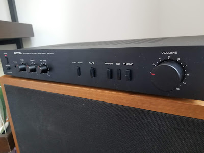 I came across this little gem, a Rotel RA-820, from early 1980's. This was from a time of hi quality amplifiers for less money, and this amp competed against the NAD 3020, which has it's own cult following. There is a little history on the early Rotel series here.